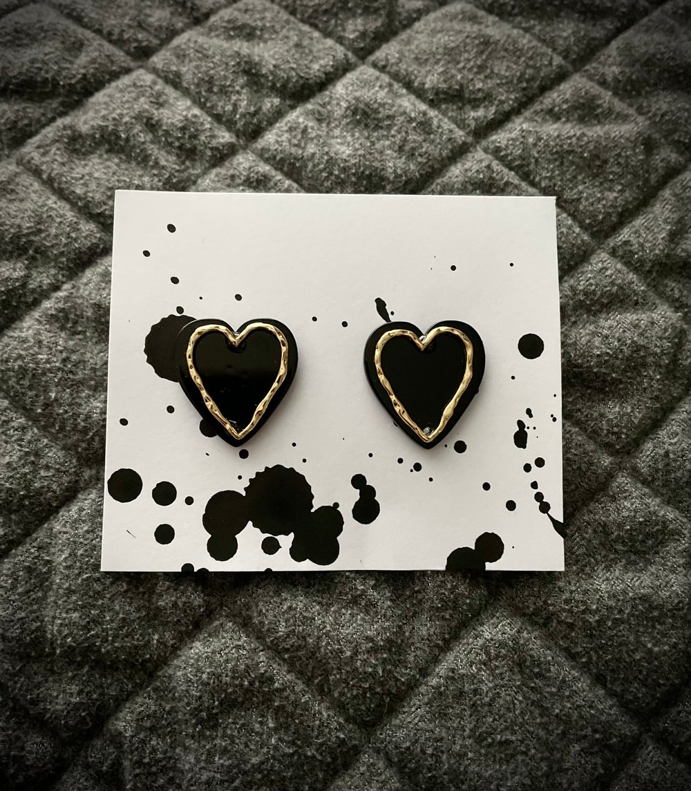 Add a hint of love to your outfit with these large black heart stud earrings. They have a gold coloured edging and will definitely catch attention from afar…